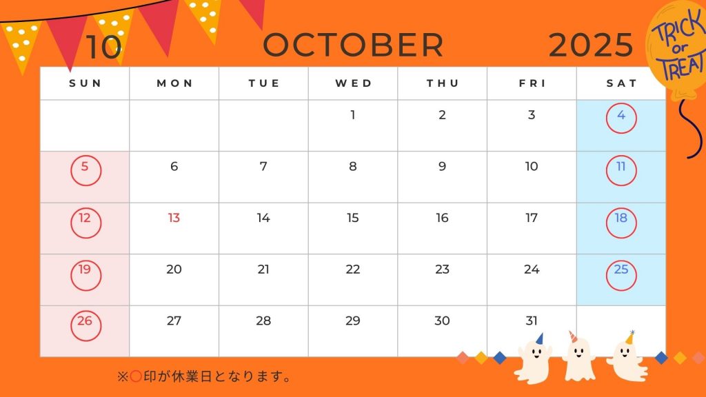 10月:営業日カレンダー(2025年)