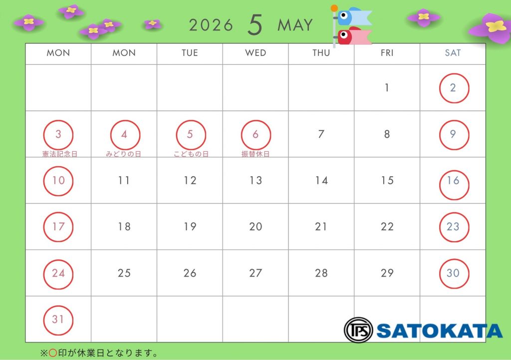 ➡️ 5月2日(土)~6日(水)まで、お休みをいただいております。