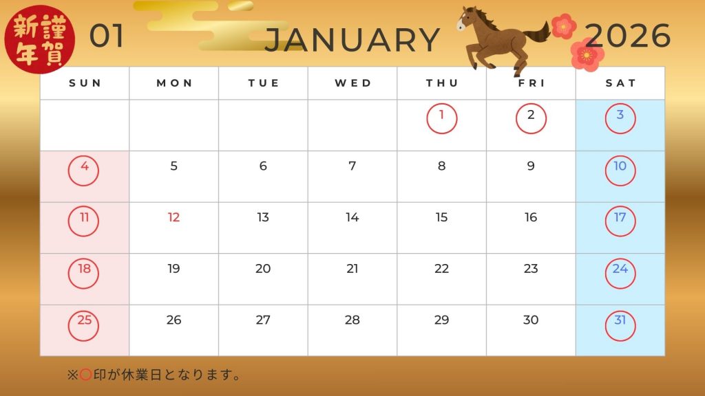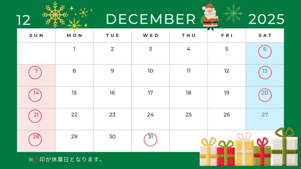 ➡ 年末年始休業 12/31(水) ~ 1/4(日) まで
